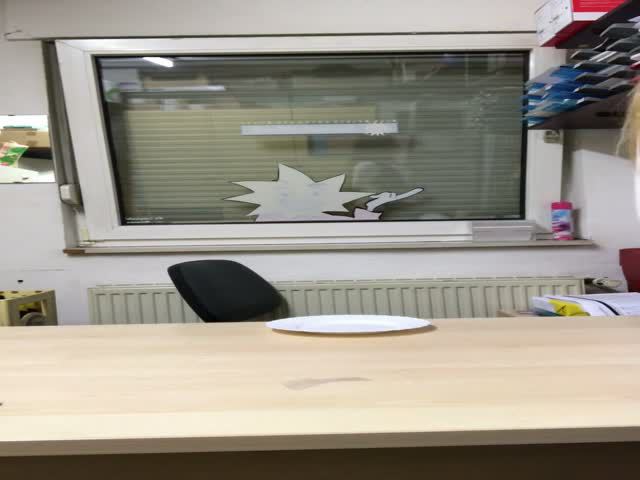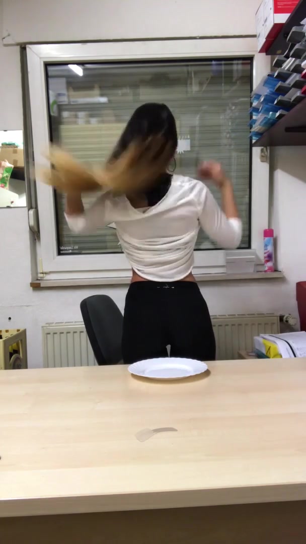 Beautiful blonde is shitting a lot on a white plate. She spreads her butt cheeks wide opened.