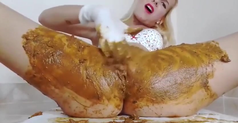 Amazing blonde milf lvoes smearing shit on her body before masturbating and moaning.