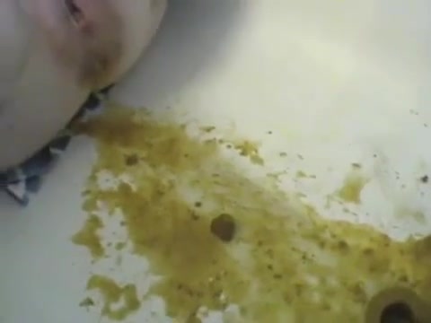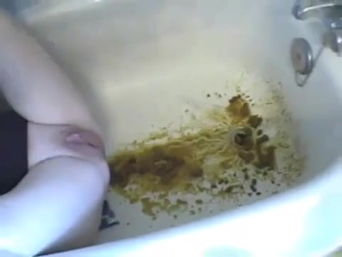 Sexy teen spreads her legs wide opened and she starts pooping with pressure in bathtub.