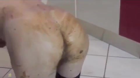Dark haired babe covered her entire body with fresh shit. She gets fucked hard in doggystyle position. Real creampie.