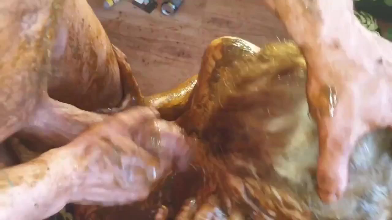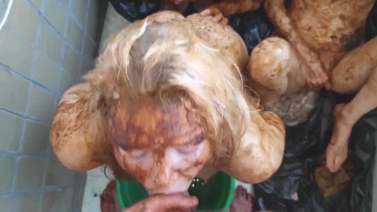 Blonde lesbian girls smear a lot of fresh shit on each other. They masturbate with poop and try to squirt.