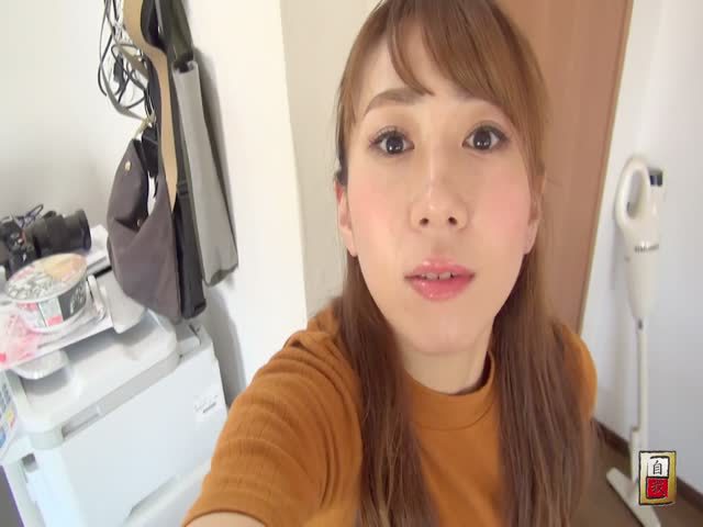 Brown haired japanese girl gets naked slowly so she can easily poop on wooden table.