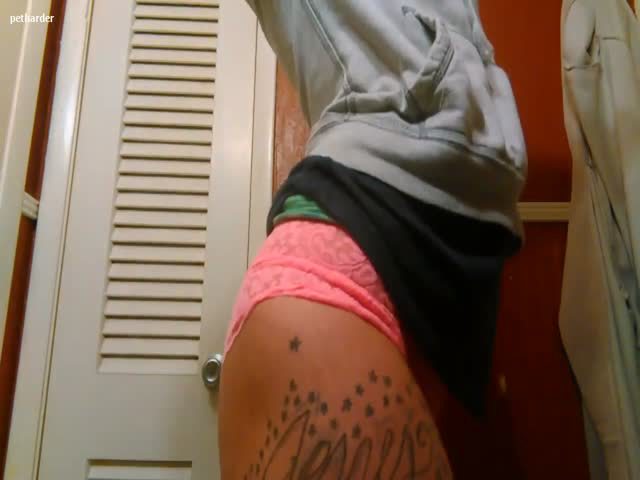 Hot ebony girl pulled her panties aside because she wanted to push a big one out.