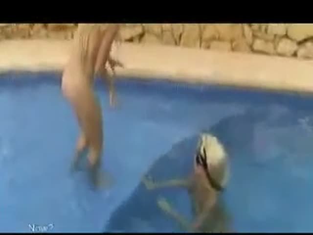Two blonde girls shit in a pool