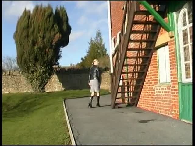sexy babe goes up the stairs and pisses down