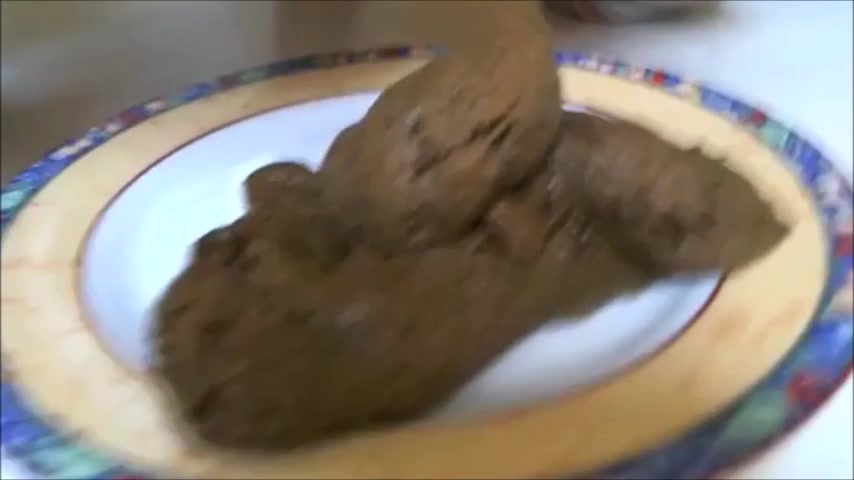 Girl shitting a big load on a plate