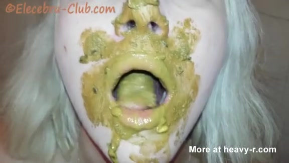 Blonde teen is forced to eat her own shit from a white plate by her naughty boyfriend.