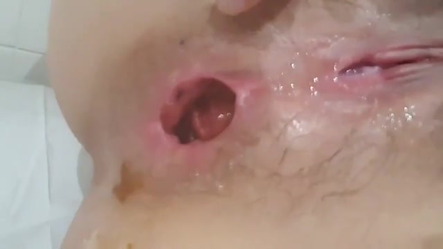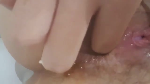 Shaved babe decides to finger her pussy and ass. That made her poop a lot on bathroom floor.
