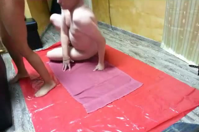 Tattooed babe slaps her ass hard as she's pooping a lot on slave's face.