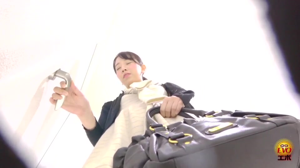 Dark haired teen can't stop farting as she tried to poop a lot in public toilet.