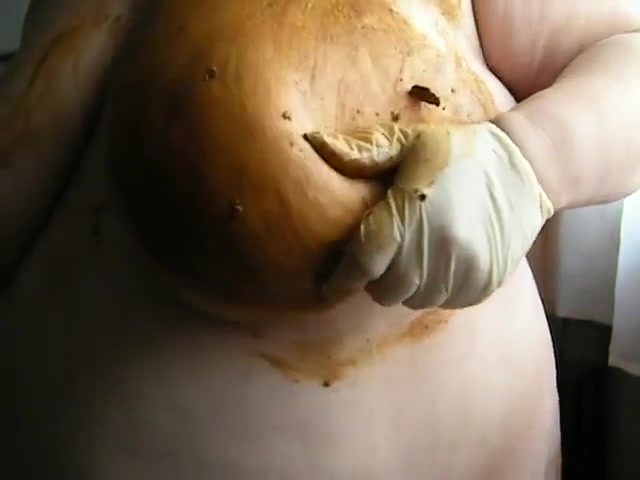 bbw sexy granny smearing poop over her big tits and belly