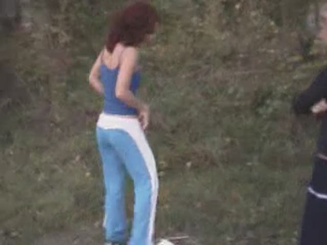 girl shitting outside with a massive turd