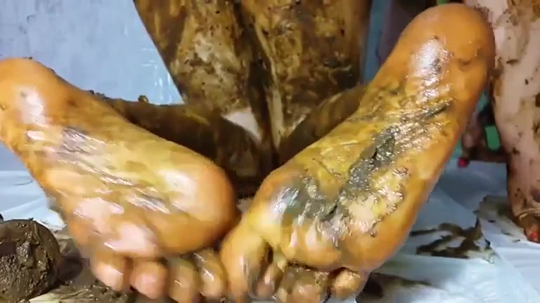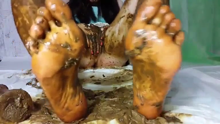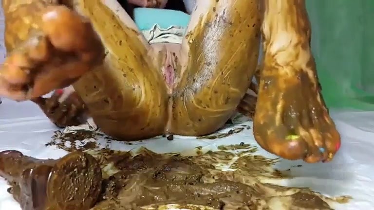 Dark-haired college girl smears brown poop on the entire body. She's amazing at masturbating with poop.