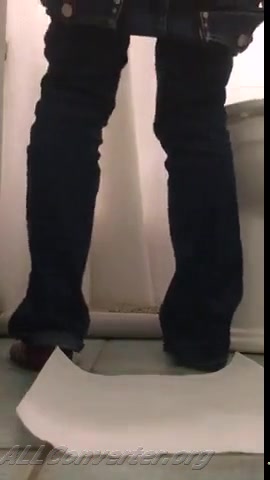 Curvy babe teasing with her big ass she's pooping a lot on bathroom floor.