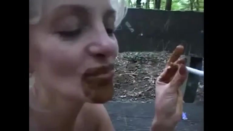 Blonde milf decides to smear brown shit on her natural tits. Her boyfriend is watching.