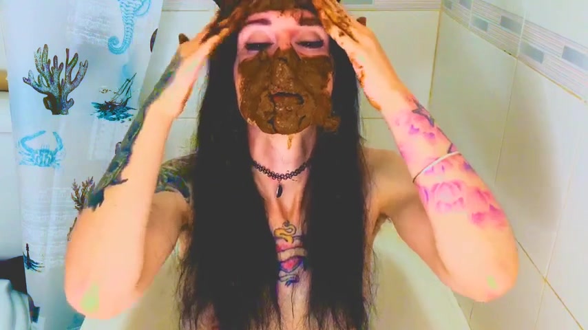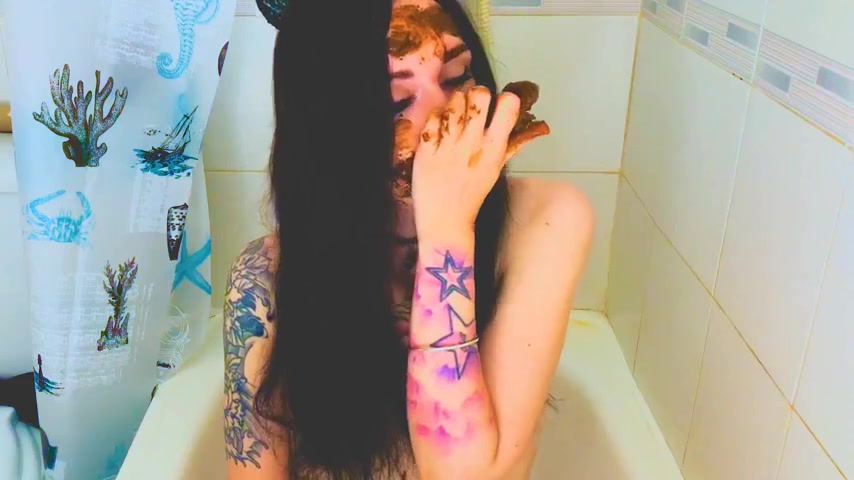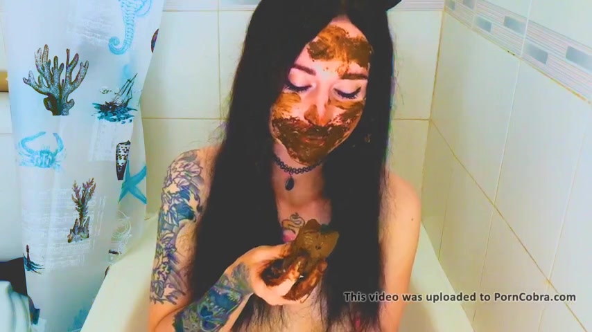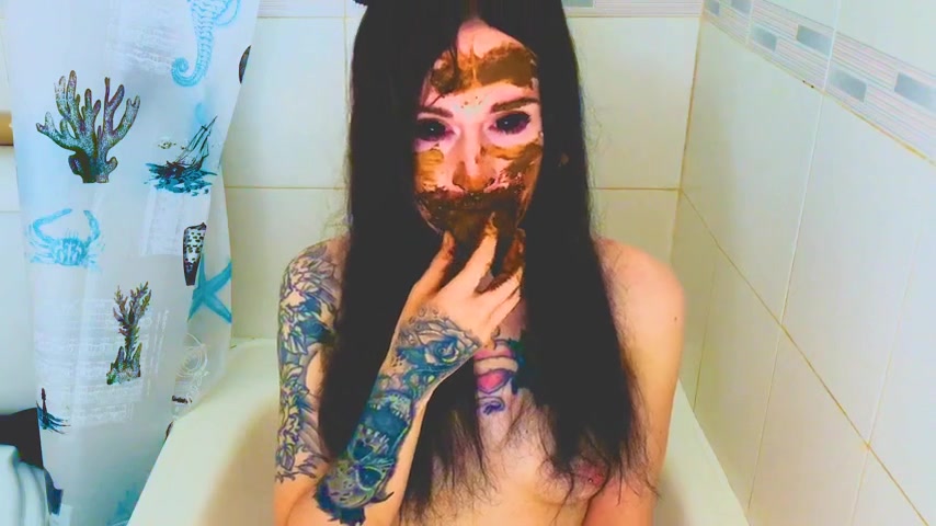 Dark haired teen smears poop on her pretty face. Amazing at masturbating with it.