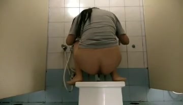 Thai brunette is pooping a lot in a plastic bucket. She wiped dirty ass with toilet paper.