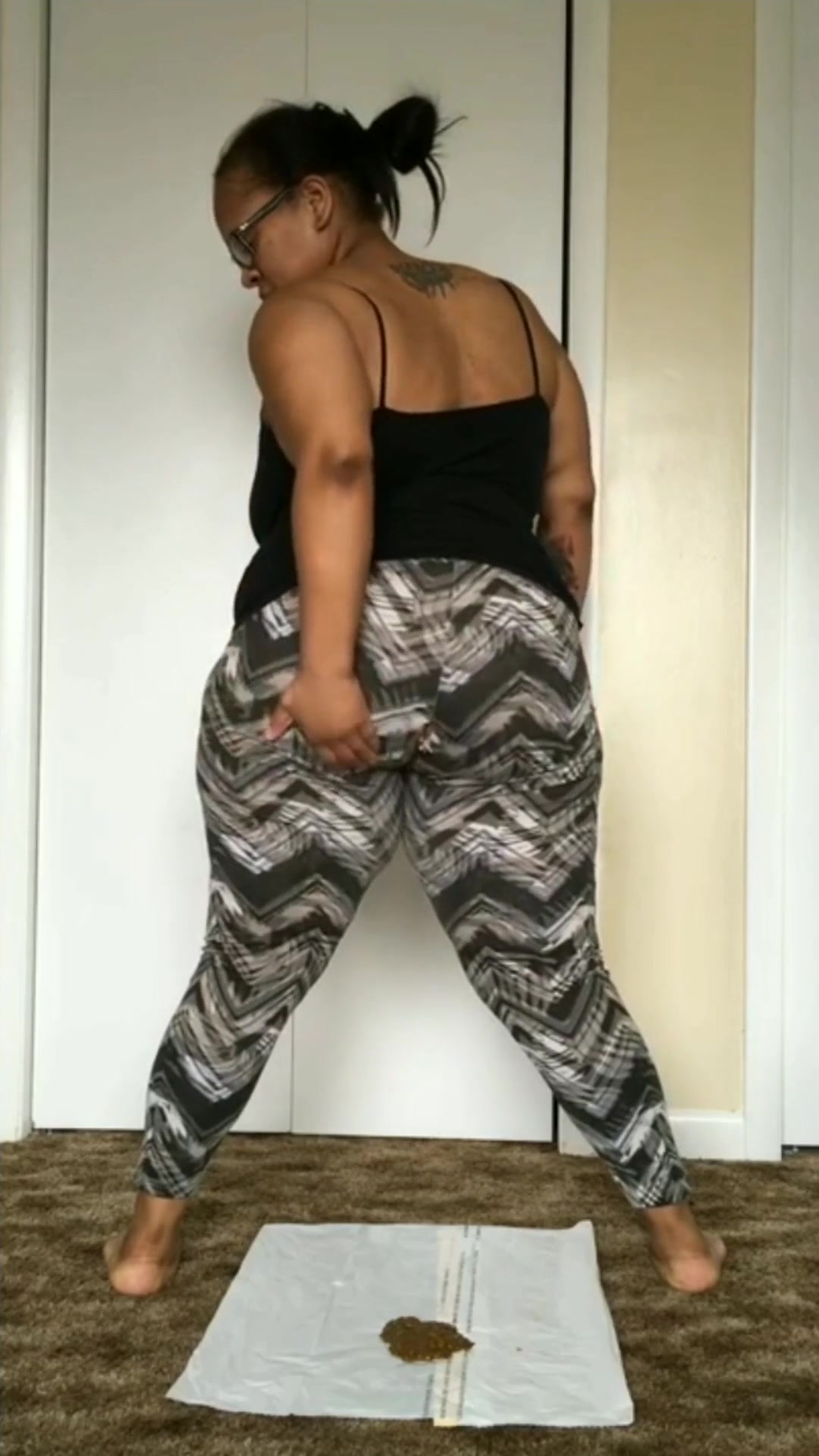 Fat ebony shitting while standing