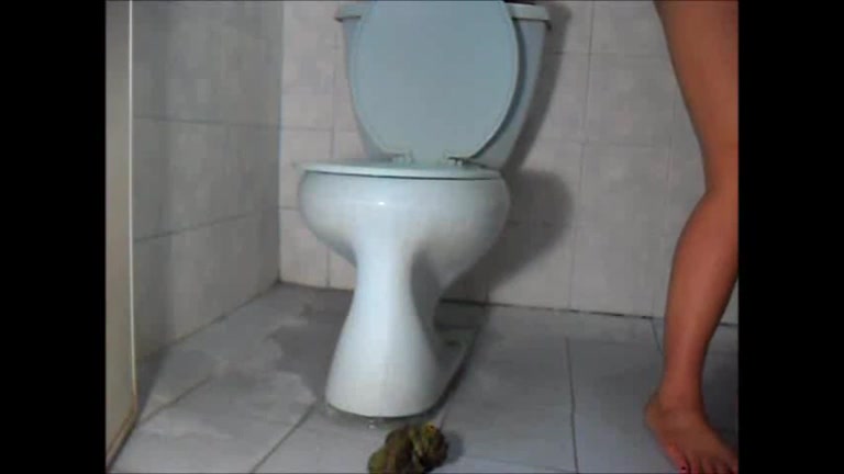Sweet brunette decides to poop on bathroom floor because she's tried of using the toilet.
