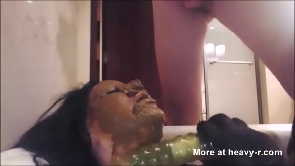 Brunette babe lets her husband to smear poop on her pretty face. He cums all over her face right after.