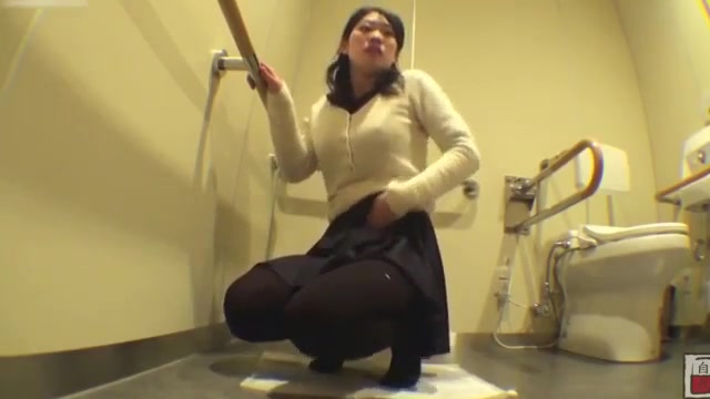 Japanese babe teasing with hairy pussy and ass before shitting over toilet.