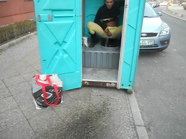 power piss from a cubicle toilet