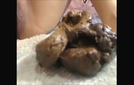 Dark haired babe spreads her legs wide opened so she can easily poop a lot on bedroom floor.