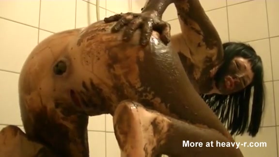 Dark haired milf smears fresh shit on entire body. She masturbates with poop until reaching climax.