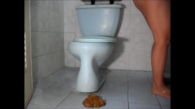 Indian teen dropped a soft pile of poop on bathroom floor. She spreads her butt cheeks wide opened.