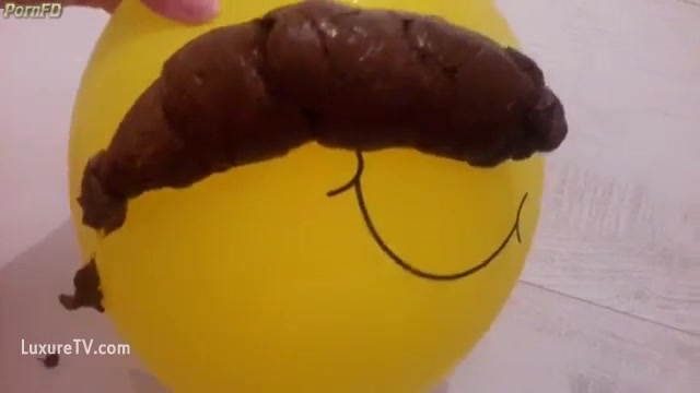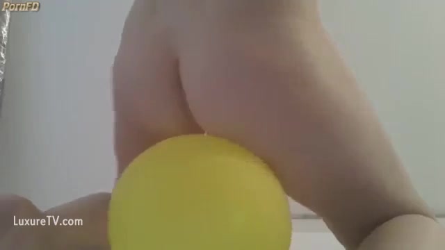 PAWG teen dropped a heavy turd on a yellow balloon, teasing with her curvy ass.