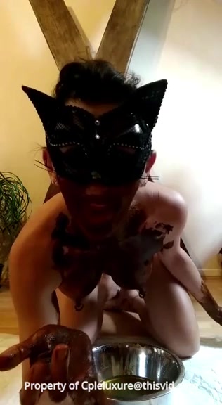 Dark haired milf eats fresh shit from metallic bowl. Her husband is watching and enjoying the show.