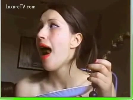 Young girl decides to lick fresh shit from a buttplug. Her first scat experience.