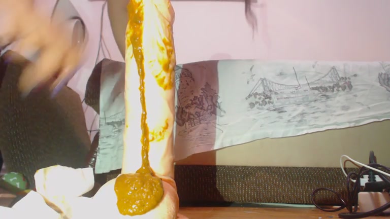 Hairy latina shits a lot on a big dildo. She did a mess and reached climax twice.