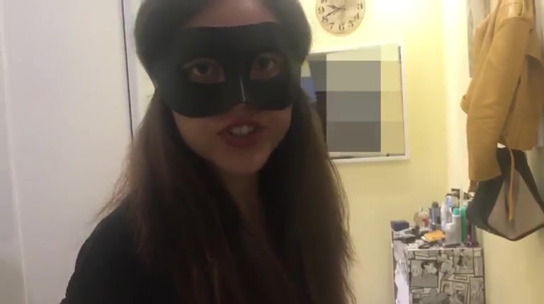 Masked college girl is pooping a lot while sitting on her knees. She's teasing with her ass, pointing it to the camera.