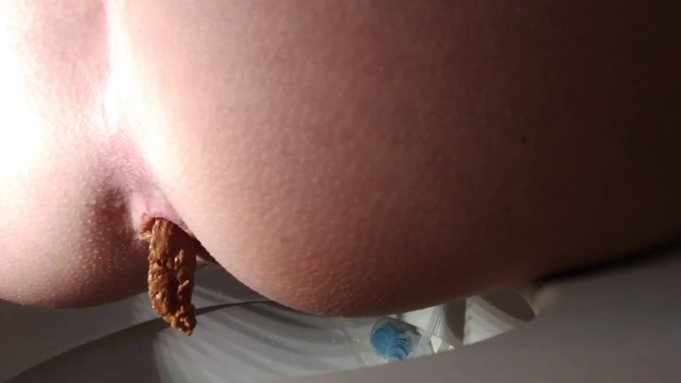 She sits on her knees, pushing brown poop from her sexy ass.