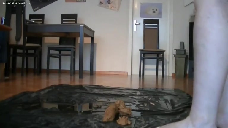 Dutch babe teasing with her bubble butt before she starts pooping on bedroom floor.