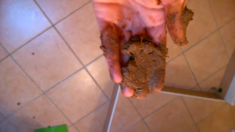 Beautiful babe covered her entire face with fresh shit. Talking dirty to her husband.