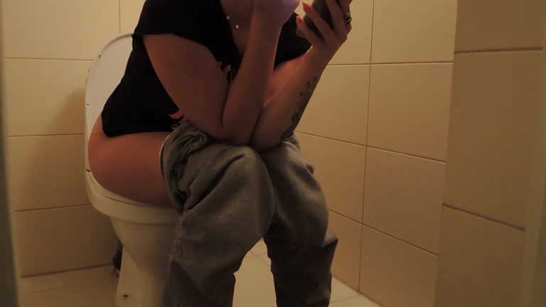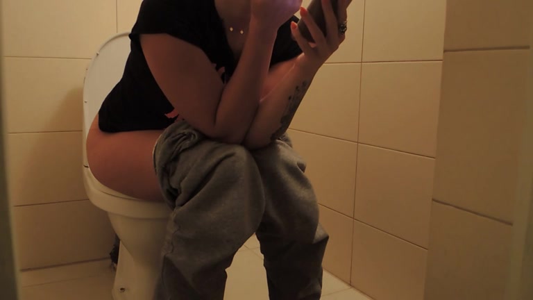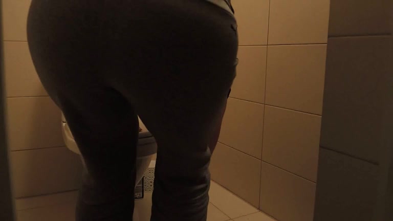 Dropped heavy turds in toilet. We can hear the water splashing.