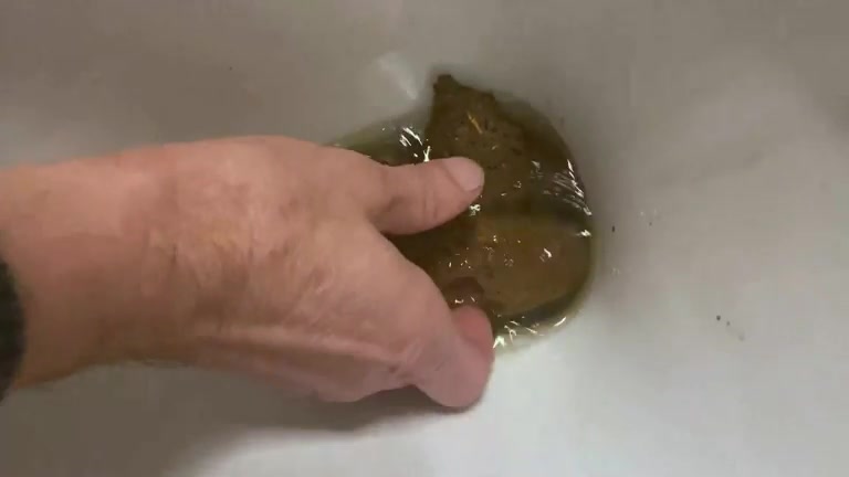 Playing with poop from toilet