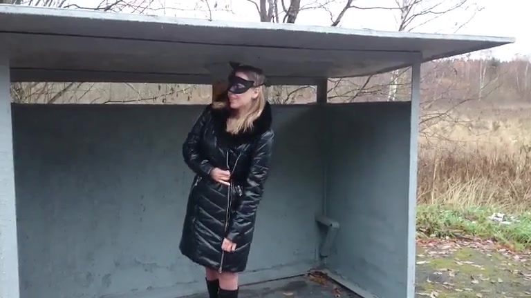 Masked milf decides to eat poop in public, at the bus stop.