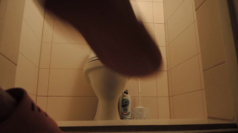 Teasing with her sexy feet as she's pooping big ones over toilet. She wiped dirty ass with toilet paper.