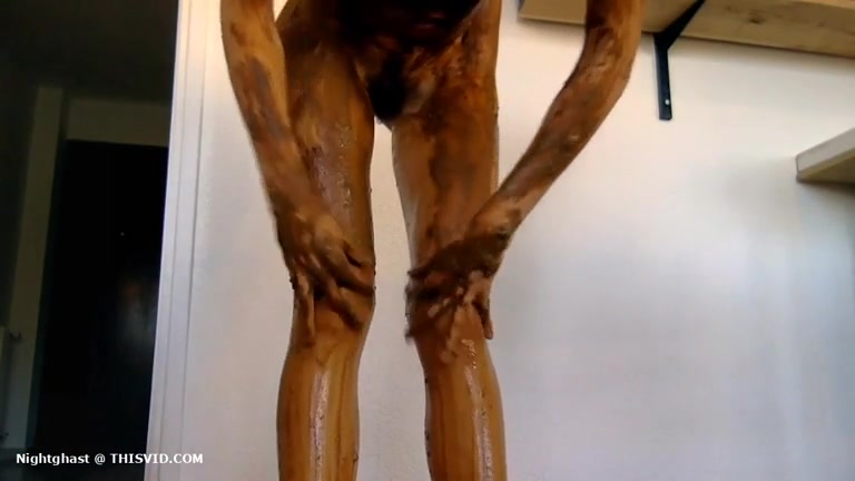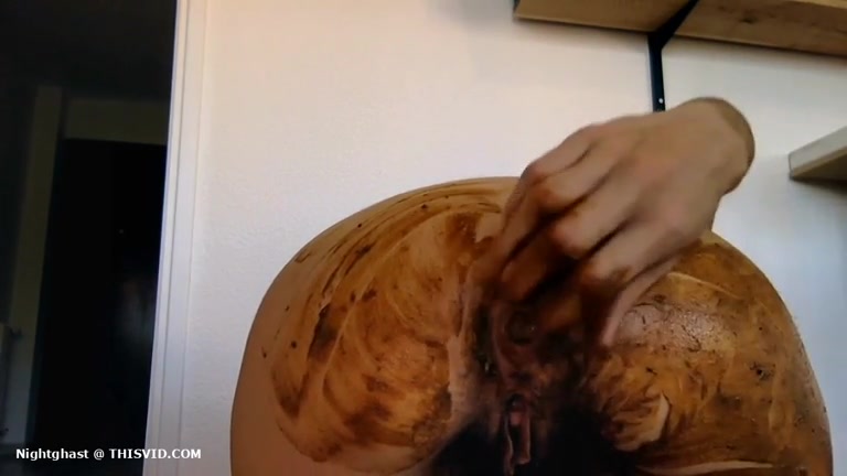 She smears poop on hairy pussy