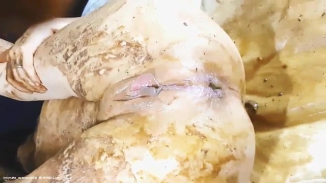 Amateur couple smear shit on their naked bodies before they fuck hard in many positions.
