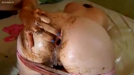 Sexy girl plays with her poop while fisting herself!