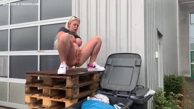 Busty babe spread legs and poop in the trash