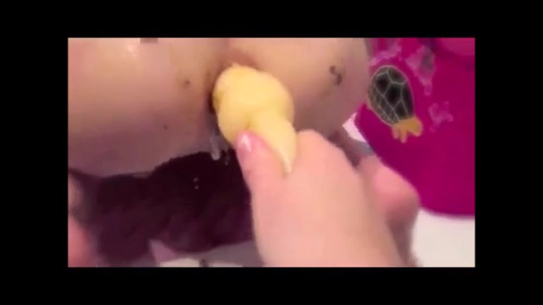Dirty shit covered anal hole drilled by big dildo