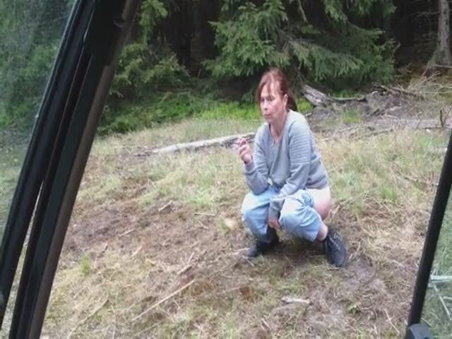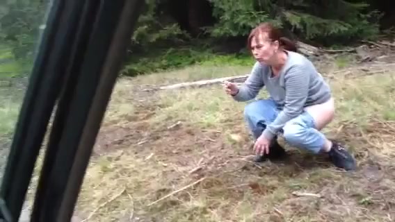 One girl shitting next to the car