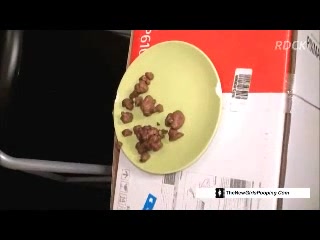 Hot babe pooping on a plate in doggy style