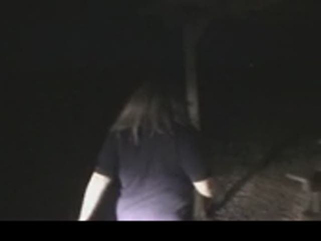 Fat woman pooping in front of the car headlights