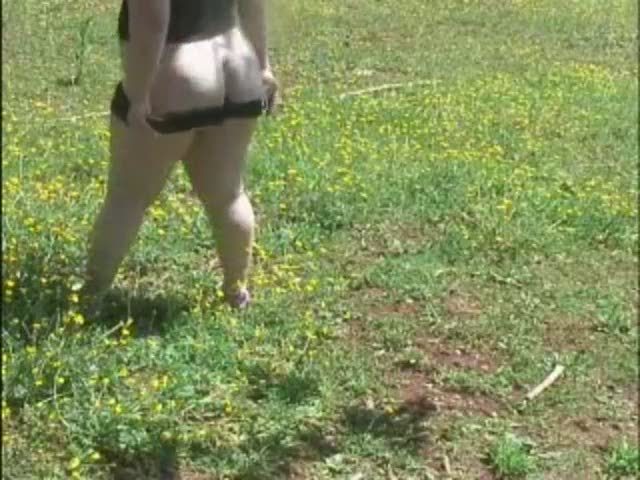 Fat woman shitting in the field